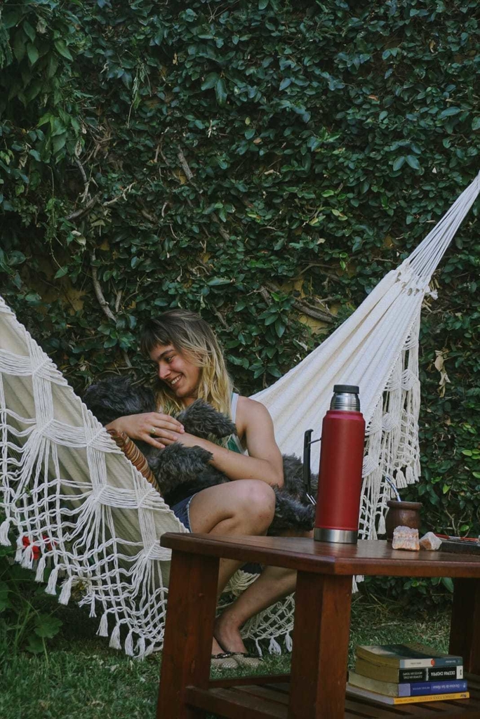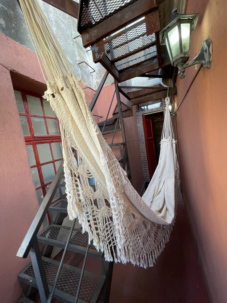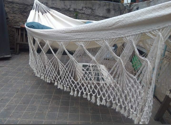 Hamaca confeccionada con puro algodón y un minimo de eslastano para una mayor comodidad en el uso.
